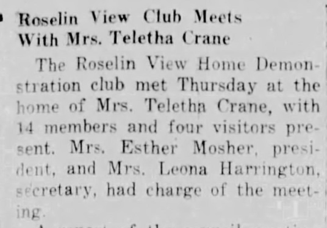 | Racey Kelley Crane | Teletha Clara | 1937 | “Roselin View Club Meets with Mrs. Teletha Crane,” newspaper article, The Alva (Oklahoma) Weekly Record, 28 May 1937, p. 3, col. 1. |